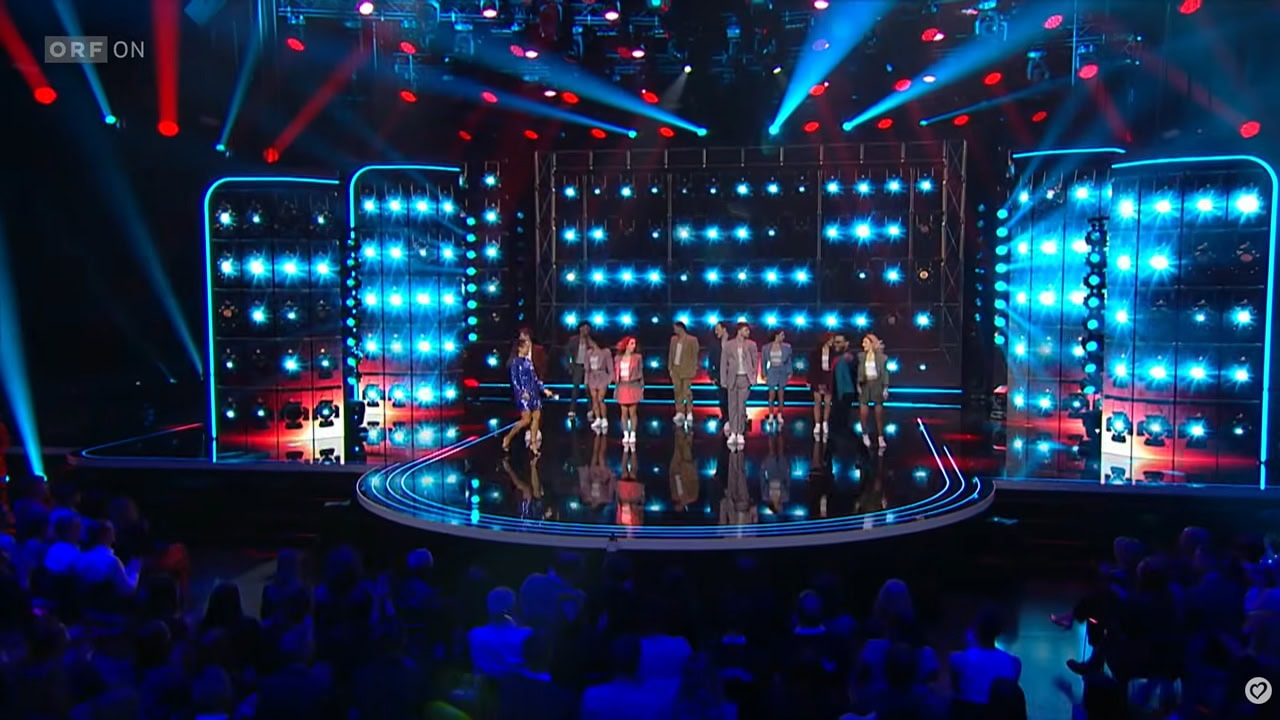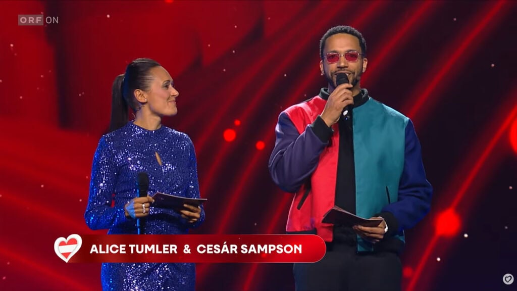 Dès les premières minutes, la production a imposé son style : éclairages contemporains, écrans géants et mise en scène particulièrement soignée. La soirée était animée par Alice Tumler, co-présentatrice de l’Eurovision 2015 à Vienne, et Cesár Sampson, arrivé troisième à l’Eurovision 2018. Les deux présentateurs ont rapidement rappelé l’enjeu majeur de la soirée : parmi les douze artistes en compétition, un seul décrocherait le droit de représenter l’Autriche sur la scène internationale.